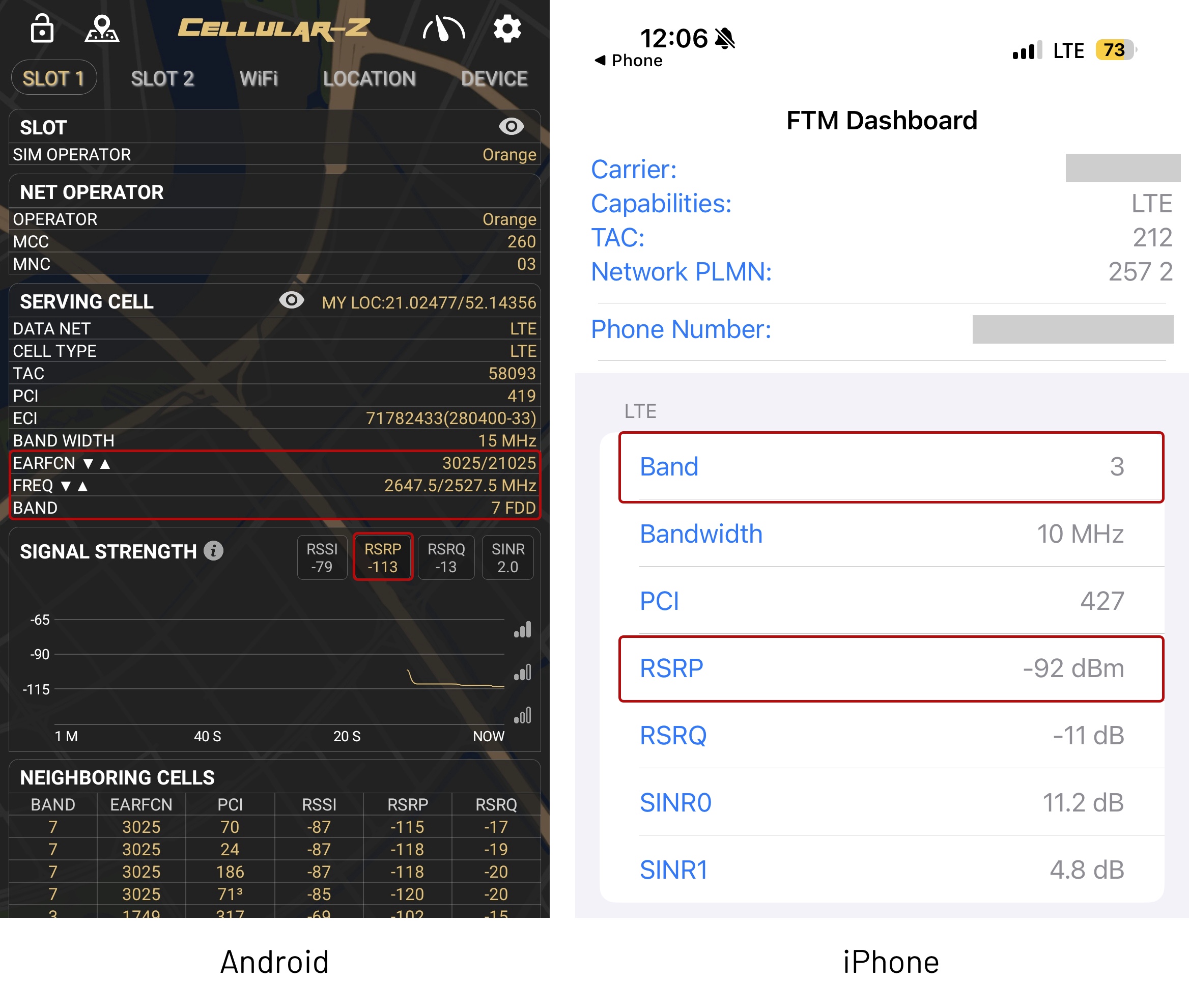 - Mesure précise : Comme l'échelle des barres de signal peut varier selon les modèles de téléphone, nous recommandons d'utiliser une application spécialisée pour une lecture plus précise de la force du signal en dBm. Pour des instructions détaillées sur la manière de mesurer le signal en dBm avec votre téléphone, consultez notre article ici.