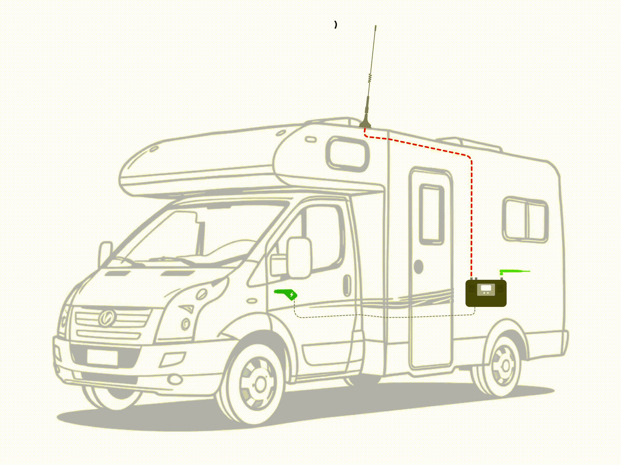 L boîte principale de l'amplificateur doit être placée dans un endroit sûr, par exemple sous un siège. Mais bien que ces endroits soient considérés comme assez sûrs pour les objets, n’oubliez pas de les bien fixer. Pour brancher l'antenne intérieure de la voiture, il y a une entrée spéciale dans la boîte de l'amplificateur prévue à cet effet. L'antenne externe est magnétique, elle doit être fixée au-dessus de la voiture. Pour allumer l’appareil, utilisez l’allume-cigare.